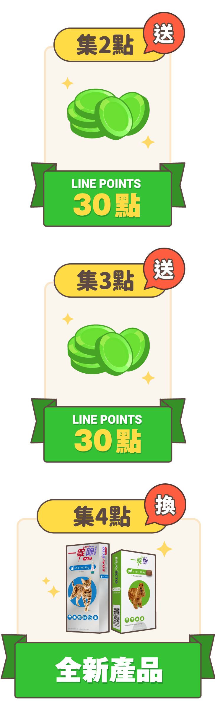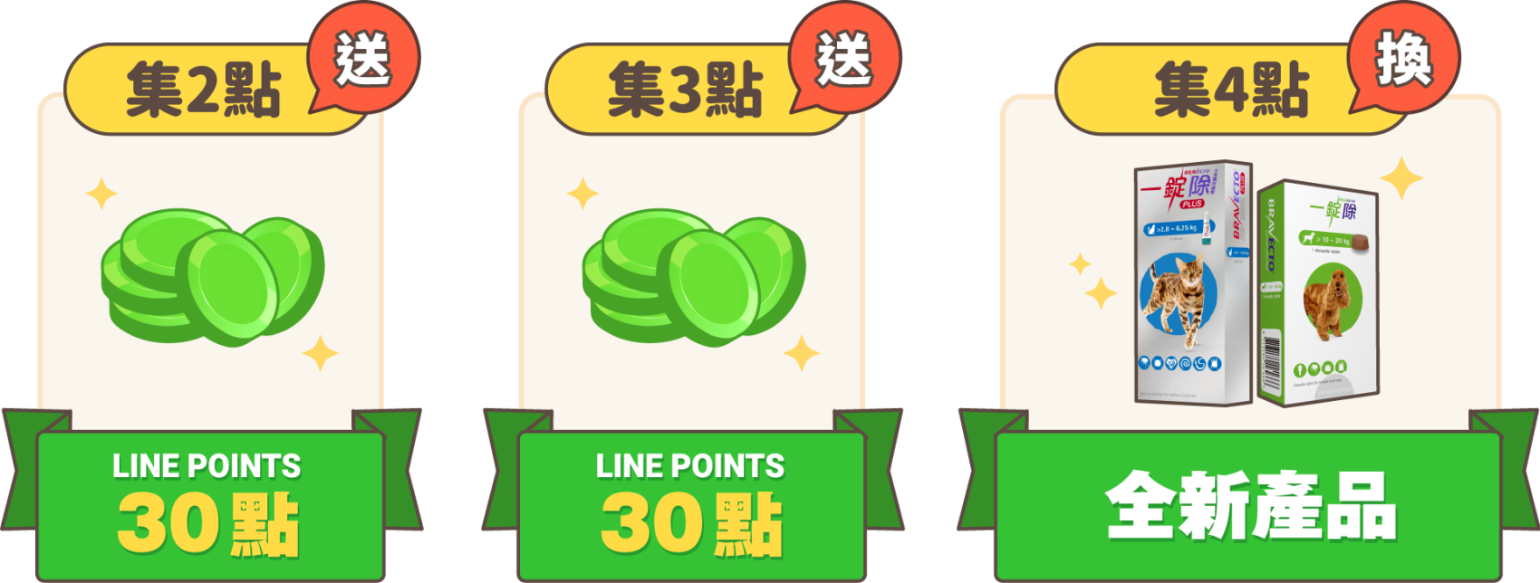 2. 一項產品只能登錄一隻寵物進行集點,同隻寵物用藥12週後才能進行第二次登錄集點。